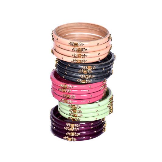 Plain Finish Multi Glass Bangle Set