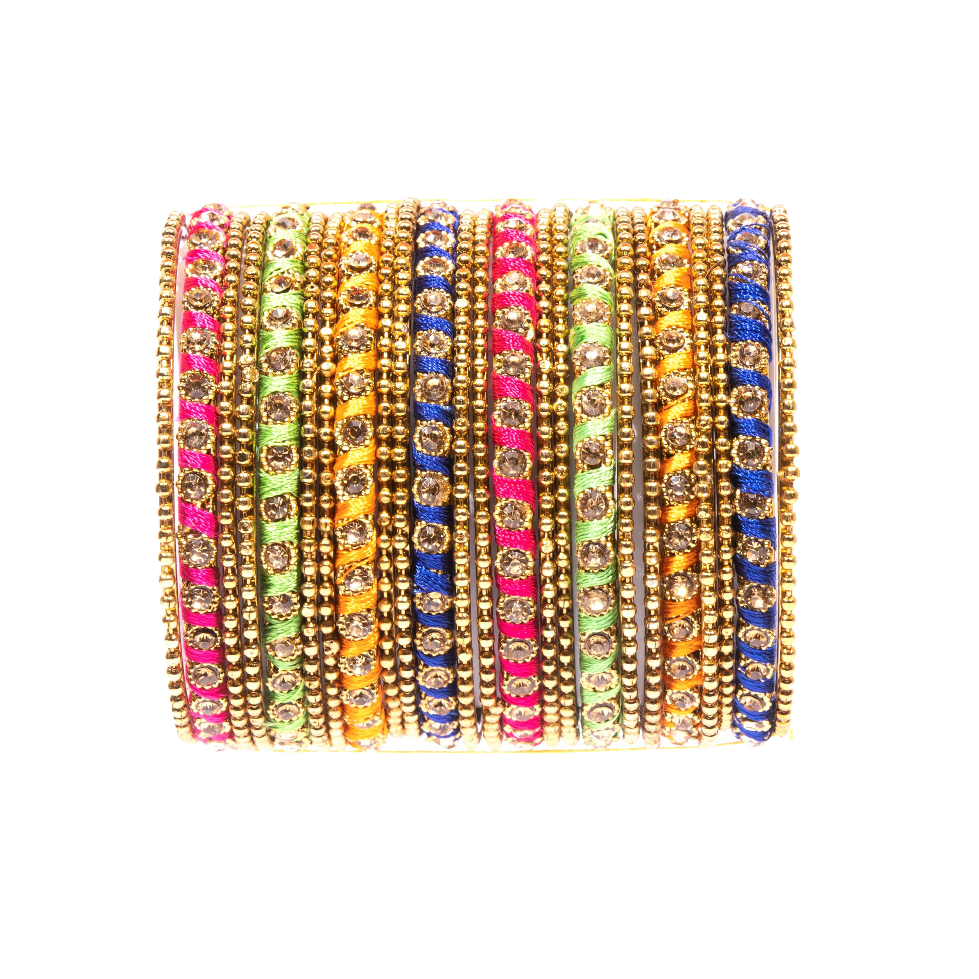 - Exquisite Craftsmanship: Delicately wrapped metal bangles adorned with vibrant silk threads for a stunning and sophisticated look.