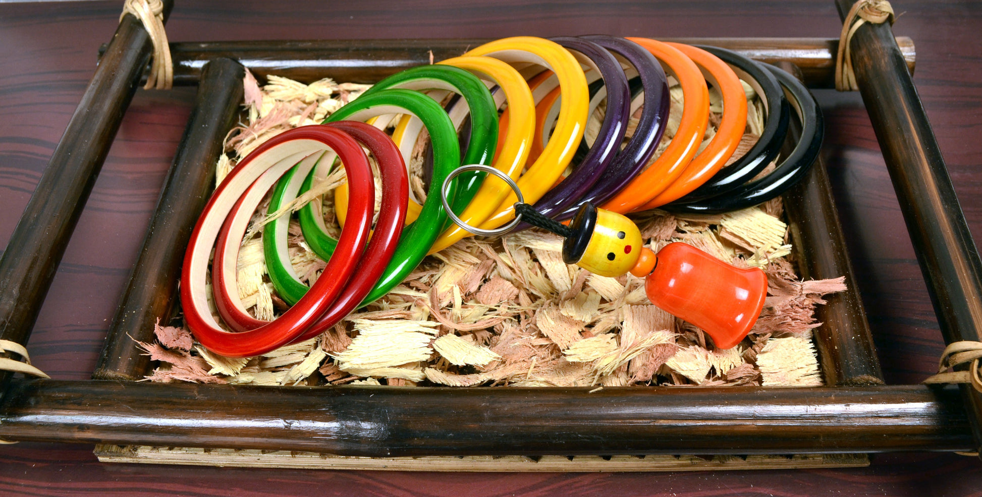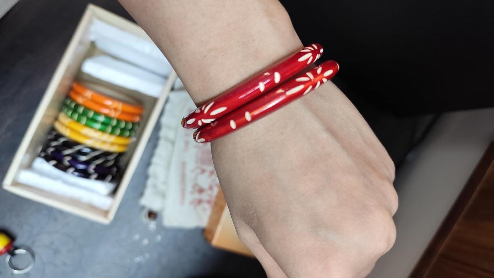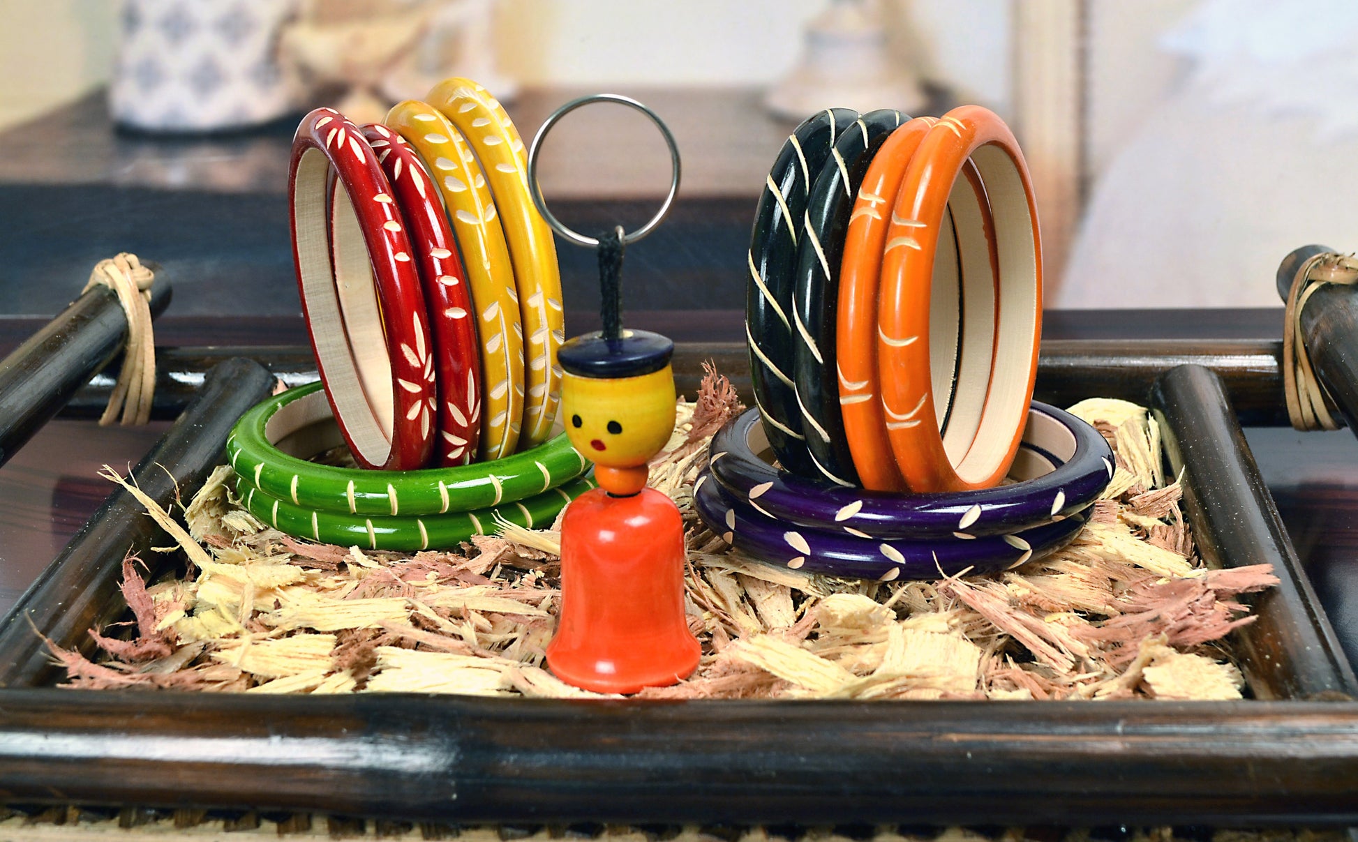 - Colors are Red Yellow Green Purple Orange Black Bangles. Made in Channapatna, known for its traditional wooden craftsmanship.